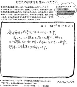季節野菜の頒布会をご利用いただきまして誠にありがとうございます。私どもも心温まるお声をいただきまして心より嬉しく拝見させていただきました。これからも安心・安全な商品をお客様にお届け出来る様、高知の美味しい物を探して参りますので、どうぞよろしくお願い致します。ありがとうございました。