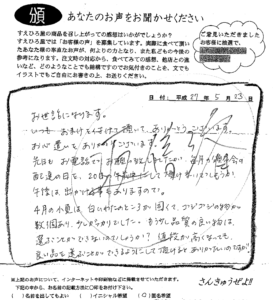 おばちゃんのはいからケーキ7種類を全て味わってみたいです。 2014年頒布の一年間、毎月の味見を楽しみにしております。一年間荷作り宜しく。 (神奈川県鎌倉市 F.H. 様) おばちゃんのはいからケーキ 旬の頒布会 神奈川県 この記事が気に入ったら いいね または フォローしてね! Follow @suehiloya Follow Me よかったらシェアしてね! URLをコピーしました! URLをコピーしました! W.A. 様 (埼玉県) 【2013・土佐の酒と肴の頒布会<3月>をお買上げいただきました。】 T.T. 様 (神奈川県) 【山北みかんをいただきました。】 関連記事 2022年7月・8月うまいもん頒布会をご注文いただきました匿名希望様より、嬉しいお言葉いただきました。 2022年9月12日 田舎寿司をご注文いただきましたR・M様より嬉しいお手紙いただきました。 2022年9月1日 2021年3月うまいもん頒布会をご注文いただきましたM・K様より嬉しいお言葉いただきました。 2021年3月31日 「田舎寿司のもと」を実際に作ったかたから、写真をいただきました 2021年3月30日 2021年1月うまいもん頒布会をご利用いただきました方から、嬉しいお言葉いただきました! 2021年1月22日 皿鉢(福)をご利用いただいた方から、嬉しいお言葉いただきました。 2021年1月4日 皿鉢をご利用いただきました方から、嬉しいお言葉いただきました! 2021年1月4日 匿名希望様、【うまいもん頒布会(2020年8月分)をお召し上がりいただきました】 2020年8月31日