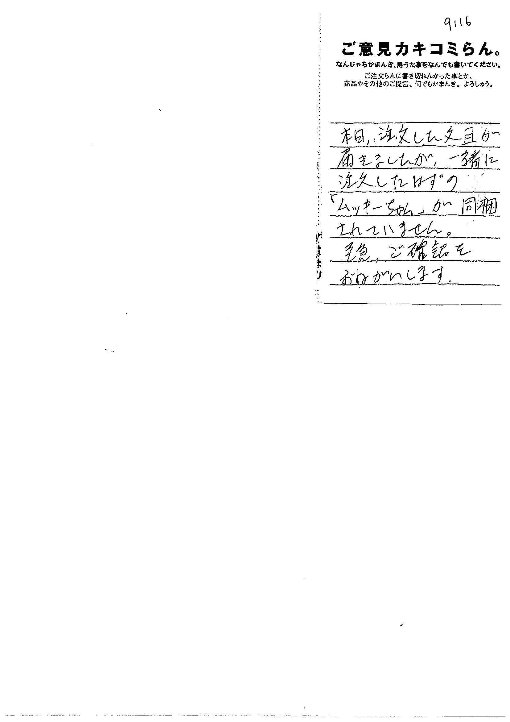 今回は雪の影響で大変だったと思いますが、予定の週末に届かずアンケートプレゼントのお米が別便で届き、心配しました。このような時は電話の一本でも有れば良かったのに・・・と残念でした。