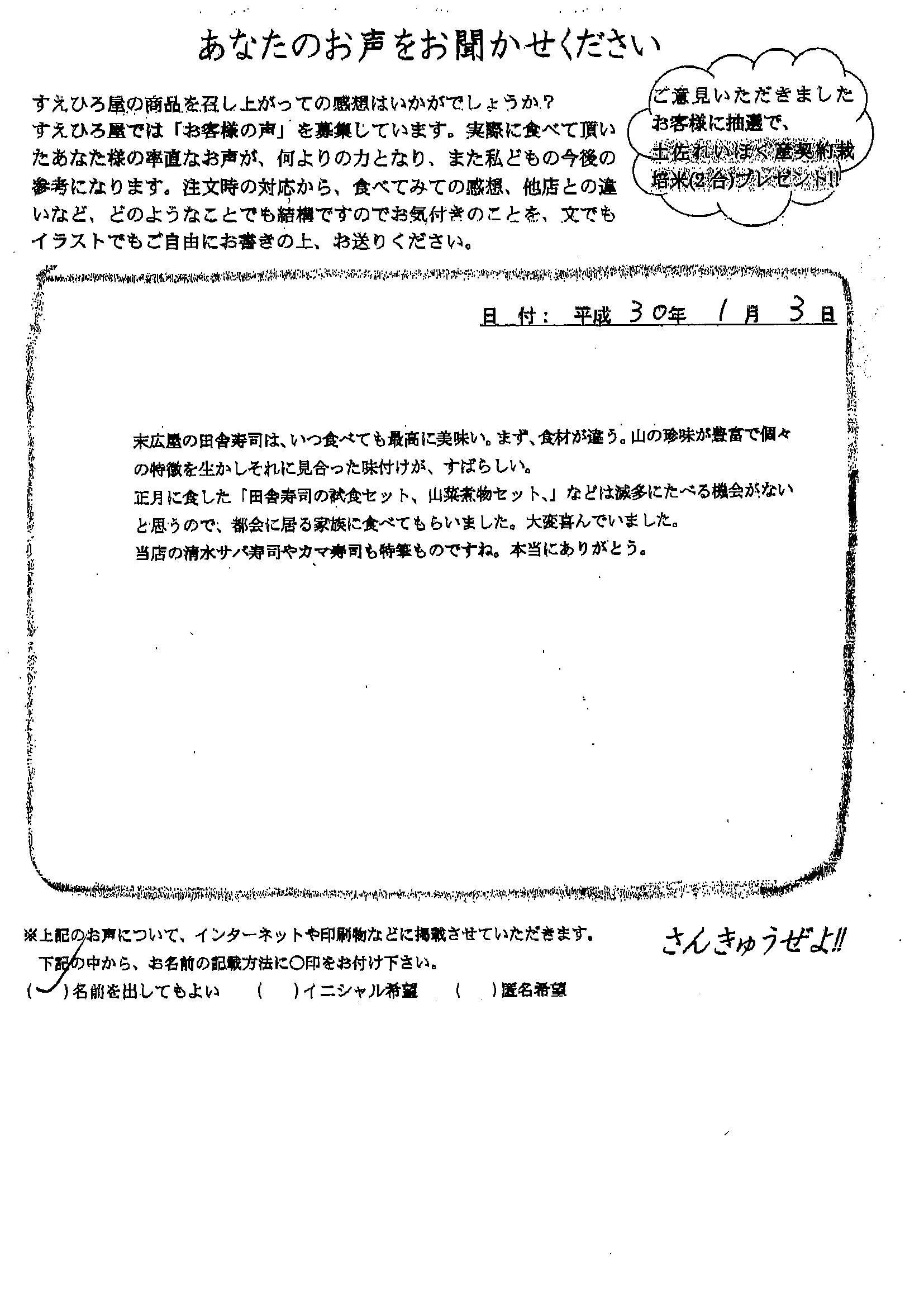 当店の清水サバ寿司やカマ寿司も特筆ものですね。本当にありがとう。