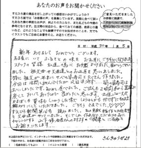 当店の清水サバ寿司やカマ寿司も特筆ものですね。本当にありがとう。