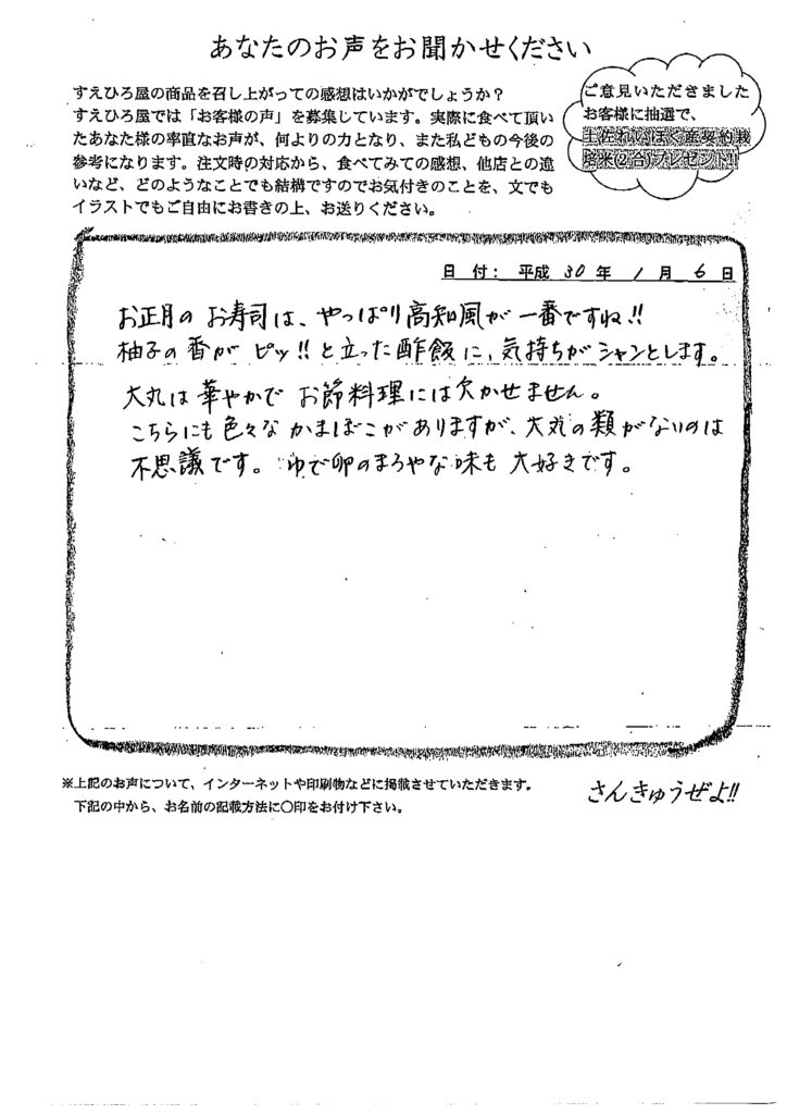 匿名希望様【すえひろ屋の寿司をお召し上がり頂きました。】