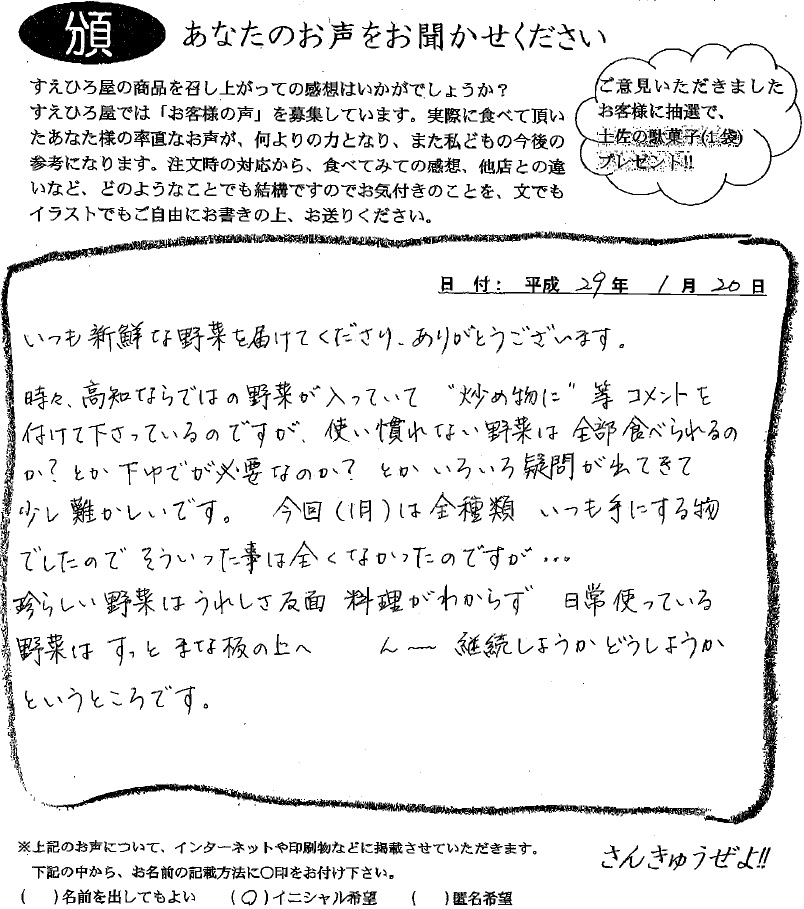I.Y. 様 (香川県) 【とれとれ野菜頒布会1月をお買い上げいただきました。】