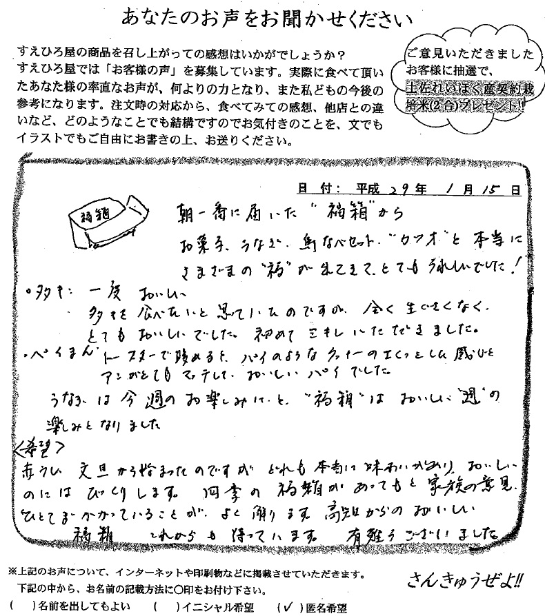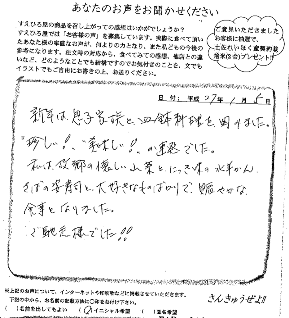 金桝 厚子 様 (京都府) 【おせちをお召し上がりいただきました。】