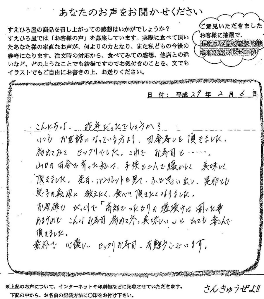 山中昭弘 様 (大阪府) 【お寿司をいただきました。】