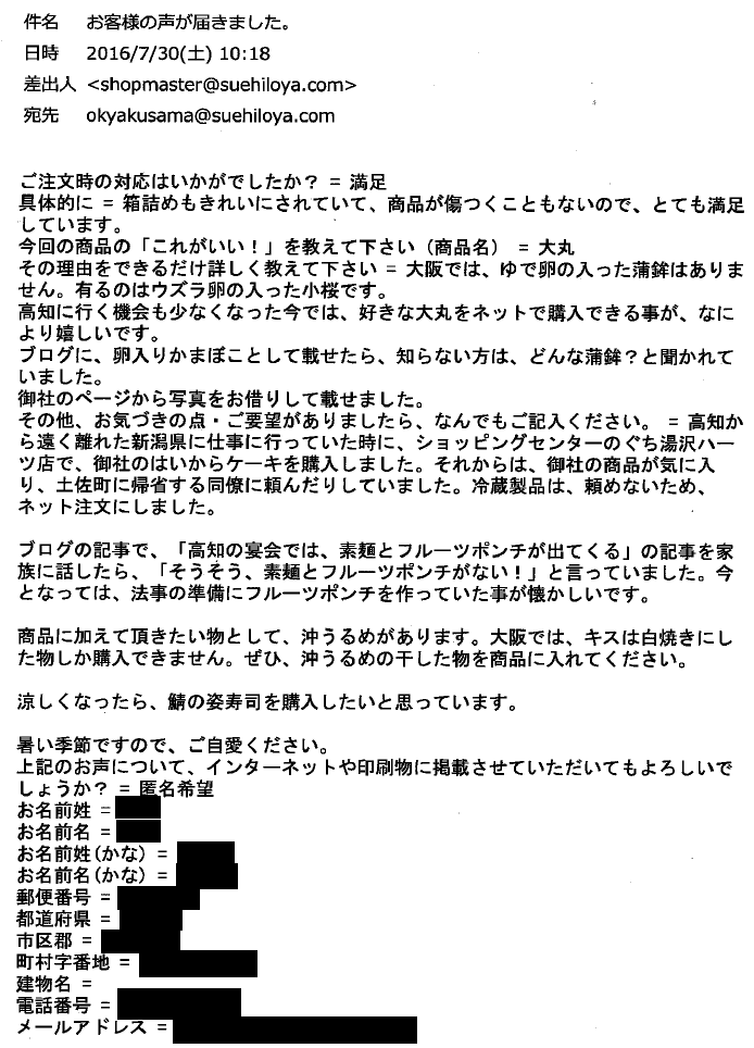 2021年1月うまいもん頒布会をご利用いただきました方から、嬉しいお言葉いただきました!