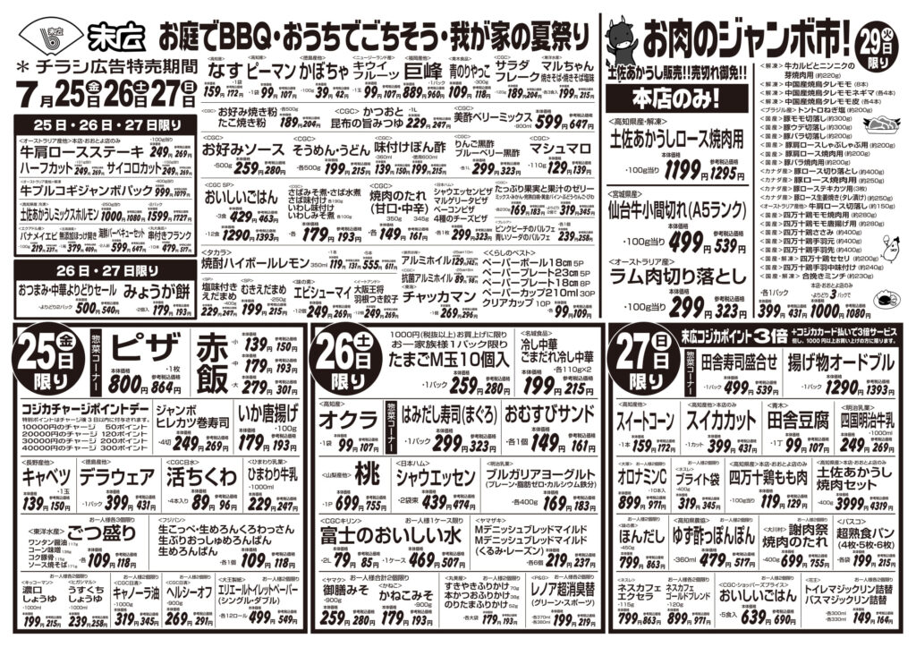 【末広チラシ情報】ネットでチラシを確認できます。 7月11日~7月17日のチラシは「みんなでBBQ!ごちそうサマ~! たこ刺身用 410円」 詳細版PDFはこちら(1.5MB)