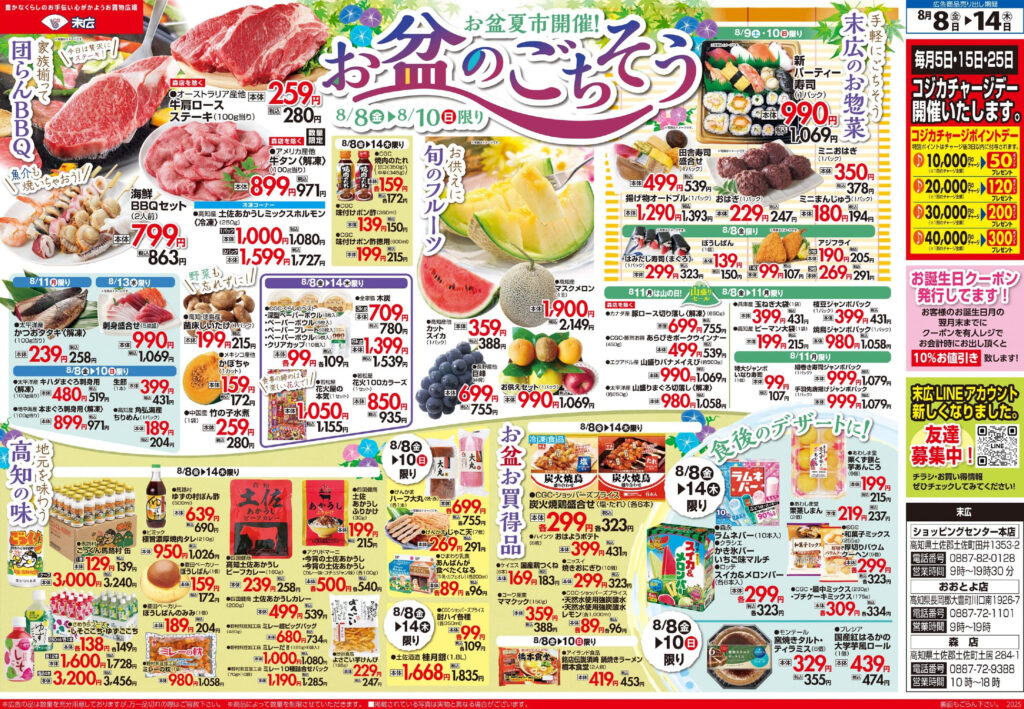 【末広チラシ情報】ネットでチラシを確認できます。 8月8日~8月14日のチラシは「お盆のごちそう 海鮮BBQセット 863円」 詳細版PDFはこちら(1.5MB) -