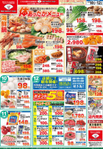 今日のチラシは「体あったかメニュー。ボイルホタテ198円」