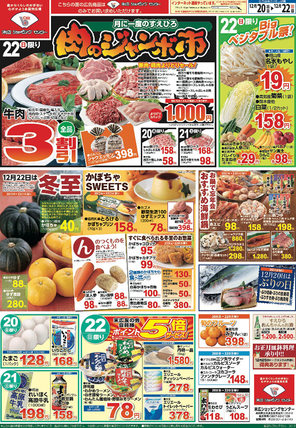今日のチラシは「月に一度のすえひろ肉のジャンボ市。牛肉全品3割引。」