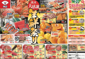 今日のチラシは「歳末大感謝祭。生鮮祭。生ズワイガニ498円」