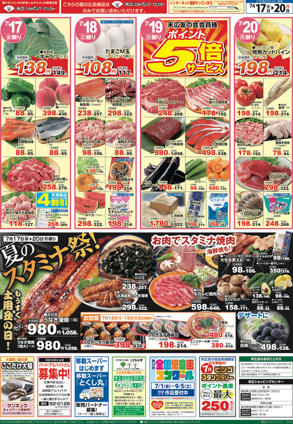 今日のチラシは「もうすぐ土用丑の日。夏のスタミナ祭り。高知産うなぎ蒲焼き980円」