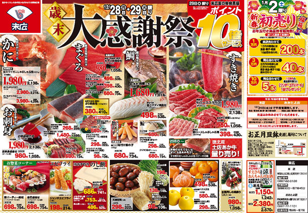 今日のチラシは「歳末大感謝祭。生ズワイガニしゃぶしゃぶ用1,980円」