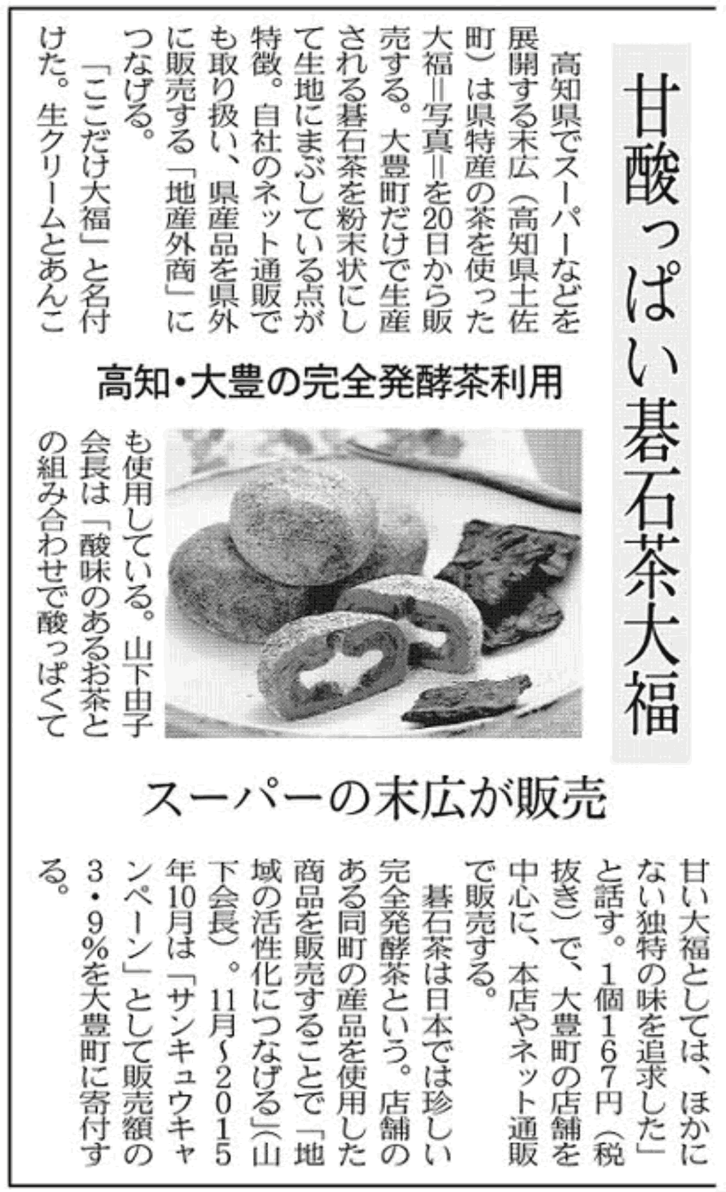 弊社の新商品「ここだけ大福」が、日経新聞四国版2014年11月15日付朝刊に掲載されました。