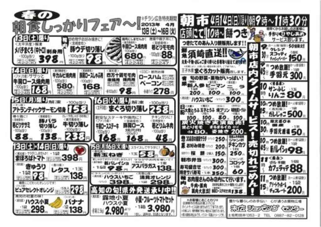 今日のチラシは「春の朝食しっかりフェア。まほろばトマト398円」