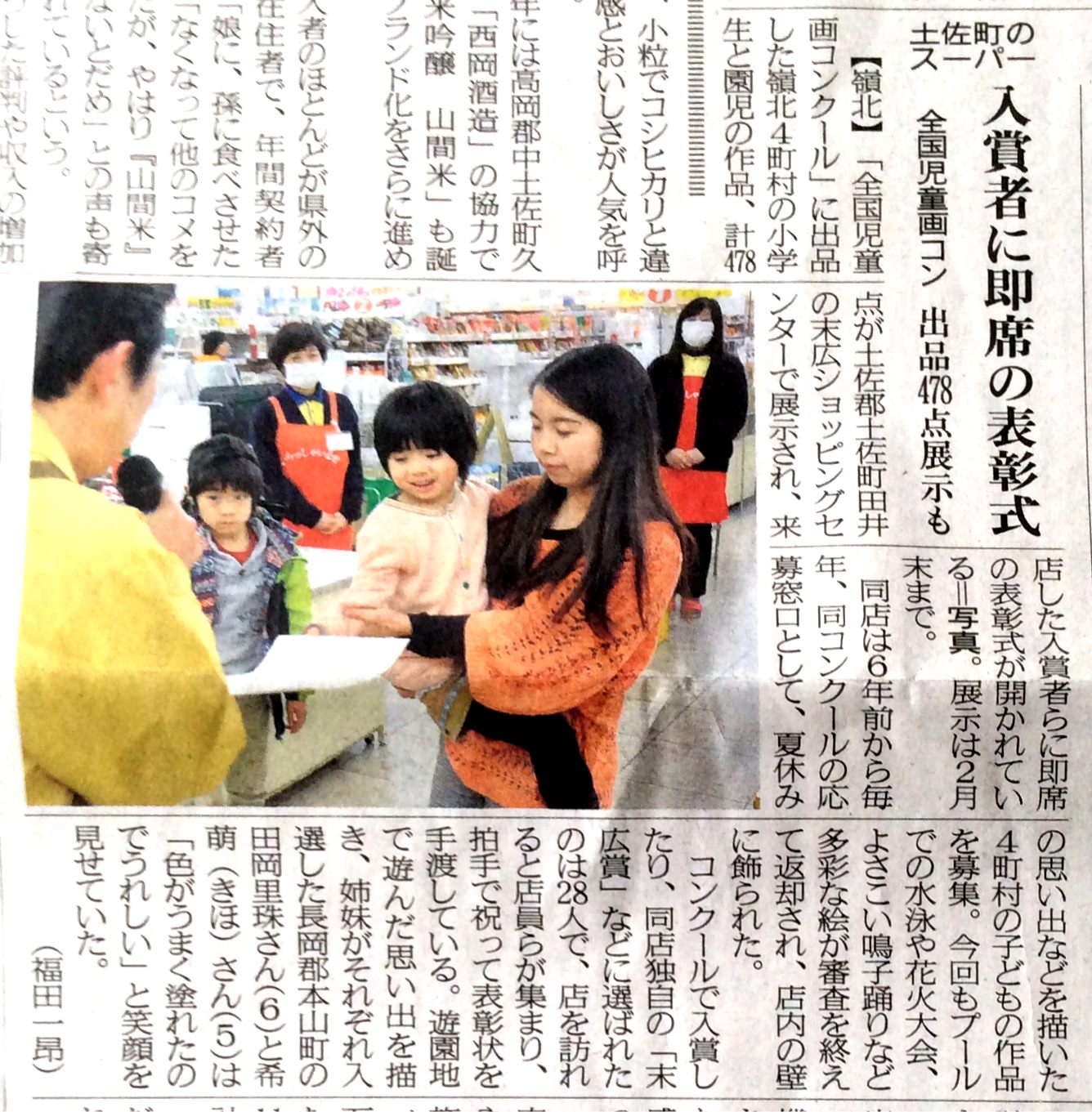 末広では、児童画コンクールの絵を店内に掲示しておりコンクールで入賞された方や末広オリジナルの「末広賞」に選ばれた方には当店にお越しいただき、即席の表彰式を行っております。