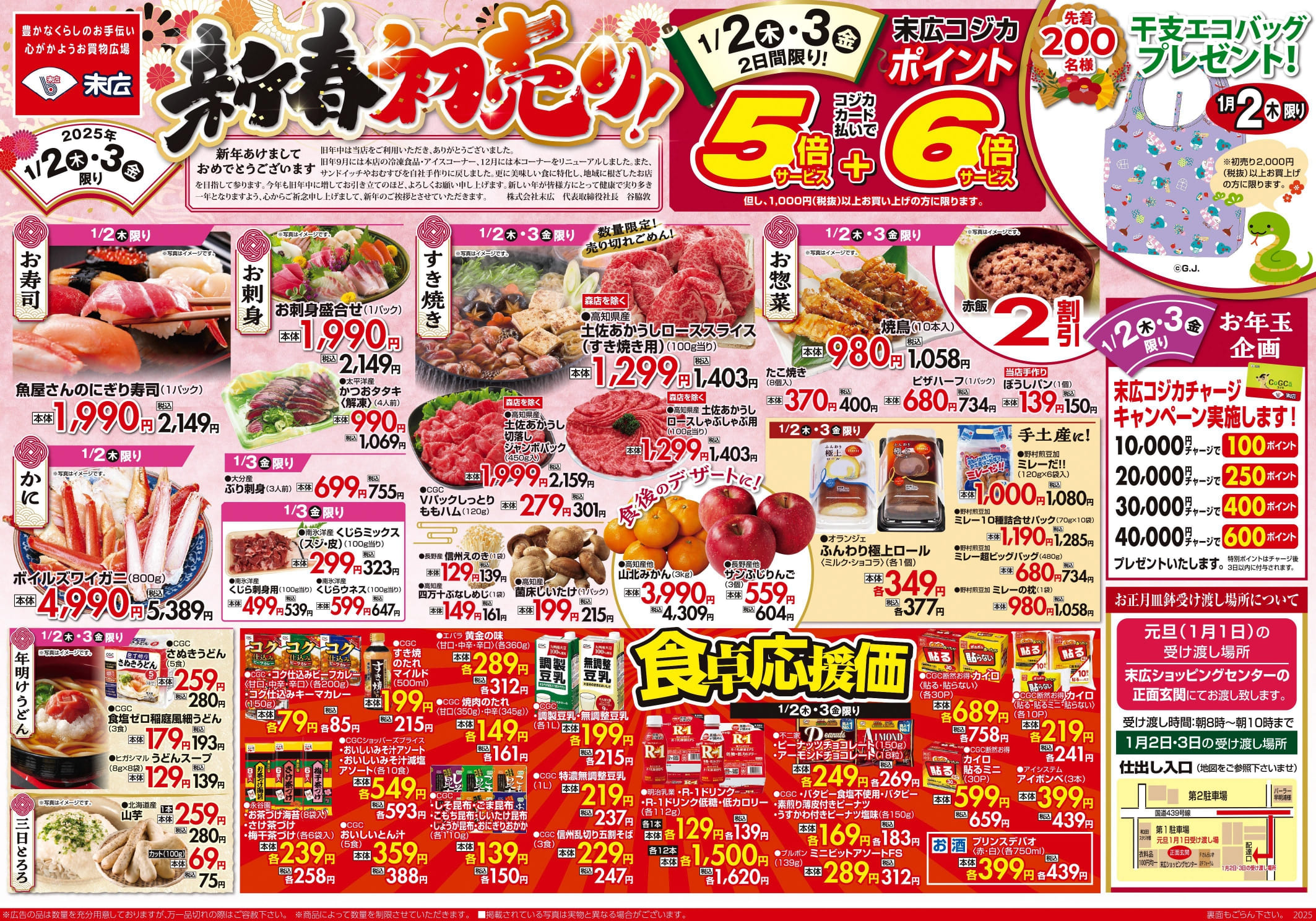1月2日・3日のチラシは「新春初売り ボイルズワイガニ 5,389円」