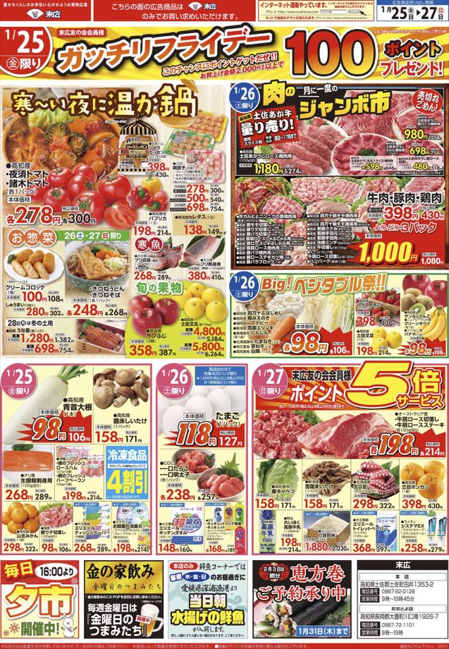 1月25日から1月27日のチラシは「寒〜い夜に温か鍋。鶏団子278円」