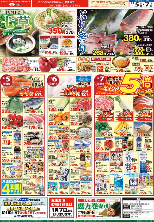 1月5日から1月7日のチラシは「1月7日は七草。七草1パック350円」