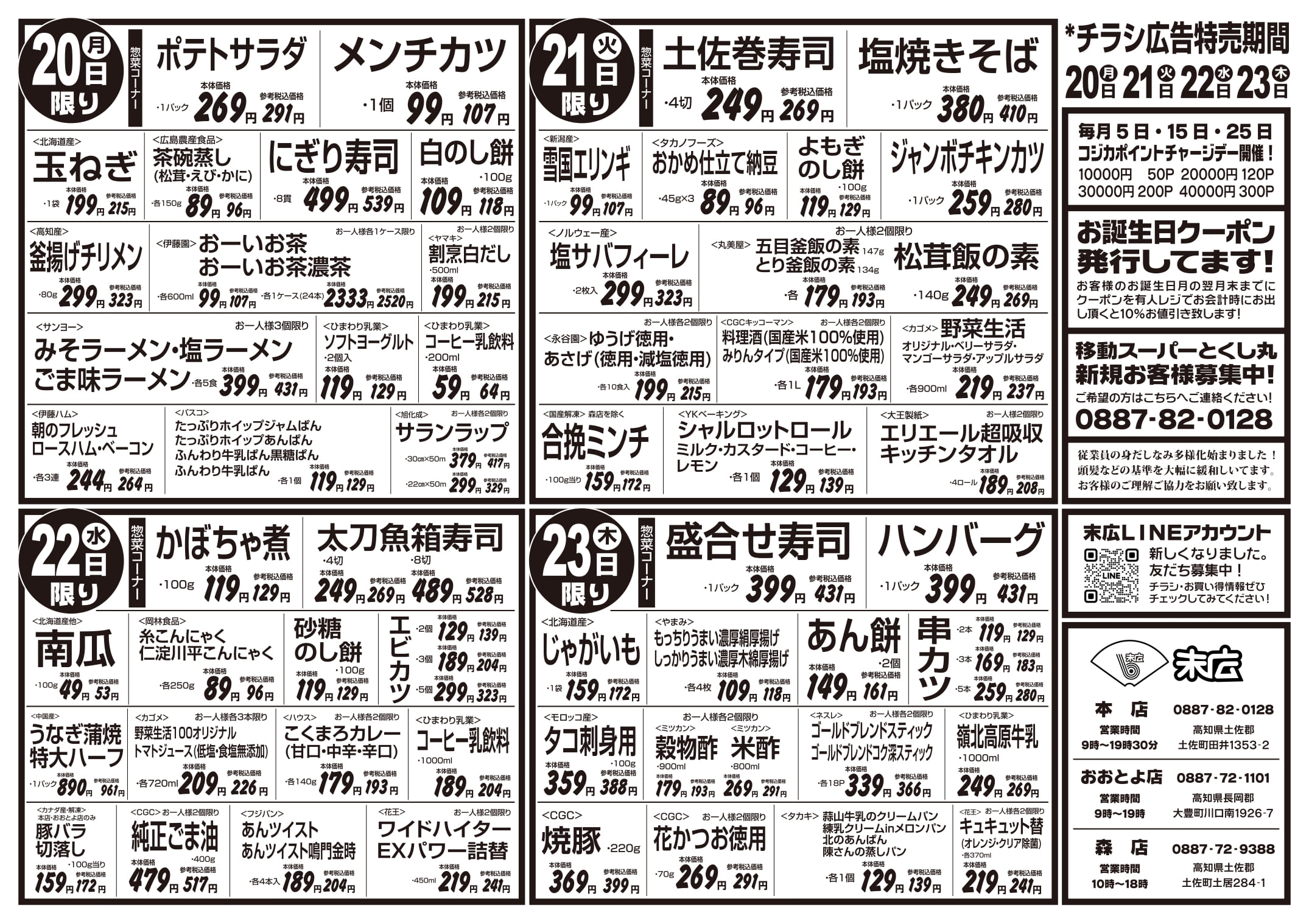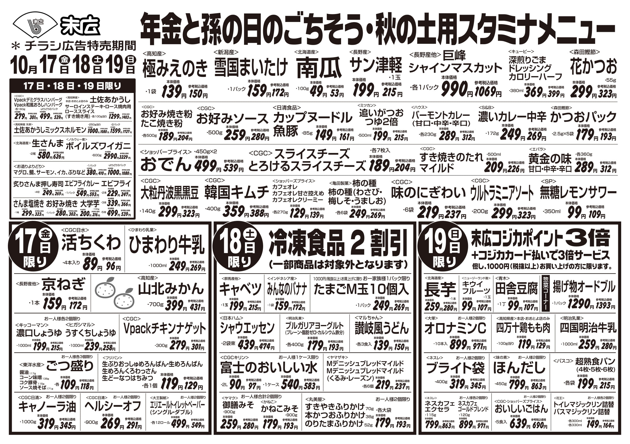 10月17日~10月23日のチラシは「秋の土用スタミナメニュー 生さんま 626円」