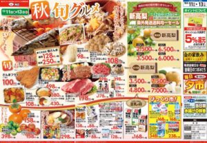 10月18日から10月20日のチラシは「今夜は鍋にしませんか。お得な牛で肉いっぱいすき焼き!牛肩ロース切り落とし198円」