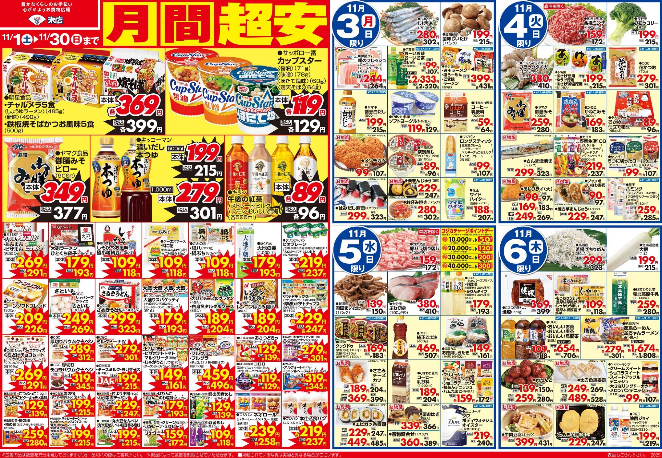 【末広チラシ情報】ネットでチラシを確認できます。 10月31日~11月6日のチラシは「月初めの市 バナメイエビ 215円」 詳細版PDFはこちら(1.5MB) チラシ情報 この記事が気に入ったら いいね または フォローしてね! Follow @suehiloya Follow Me よかったらシェアしてね! URLをコピーしました! URLをコピーしました! 株式会社末広のHPがリニューアルしました 関連記事 株式会社末広のHPがリニューアルしました 2025年10月30日 10月24日~10月30日のチラシは「おうちでハロウィンしよ サーモン刺身用 388円」 2025年10月23日 10月17日~10月23日のチラシは「秋の土用スタミナメニュー 生さんま 626円」 2025年10月16日 高知新聞で「田舎寿司せっと」が紹介されました! 2025年10月16日 9月5日~9月11日のチラシは「秋のうまかもん祭り 本マグロ刺身用 755円」 2025年9月4日 8月29日~9月4日のチラシは「家計応援! 総力祭 トラウトサーモン 215円」 2025年8月28日 8月22日~8月28日のチラシは「初秋の味わい・秋の新商品 生さんま1尾 215円」 2025年8月21日 8月15日~8月21日のチラシは「夏のスタミナ飯特集 北海道産 無添加ほっけ開き 410円」 2025年8月14日