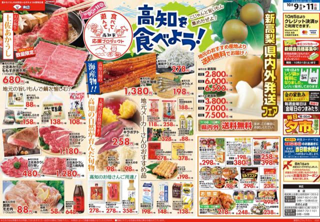 【末広チラシ情報】ネットでチラシを確認できます。10月9日から10月11日のチラシは「高知を食べよう!食べて!遊んで!高知家応援プロジェクト。土佐あかうしももすき焼き用680円」http://ow.ly/mwG750BLMDG 簡易版jpg(kB)、http://ow.ly/P0rq50BLMDH 詳細版pdf(5.1MB)