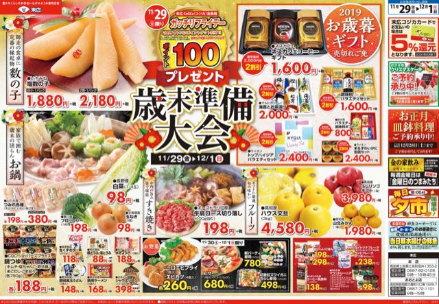 11月29日から12月1日のチラシは「歳末準備大会。塩数の子1,880円」