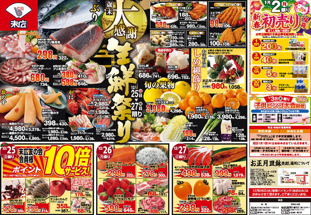 12月25日から12月27日のチラシは「歳末大感謝生鮮祭り。ボイルズワイガニ2,980円」