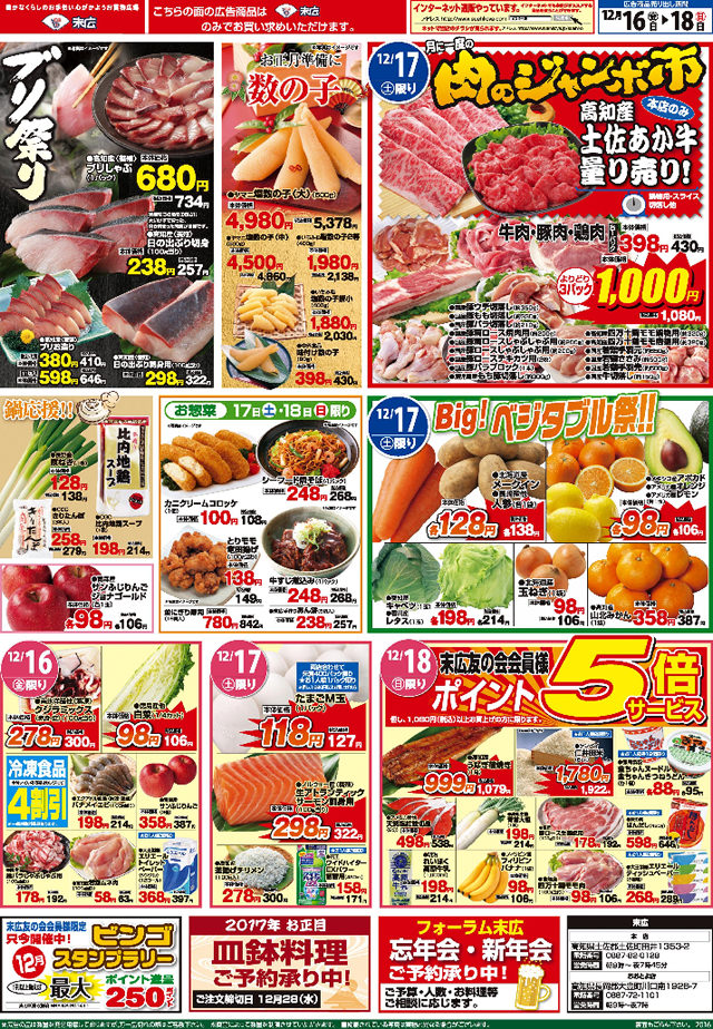 12月16日から12月18日のチラシは「ブリ祭り。高知産ブリしゃぶ680円」