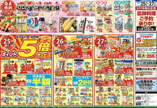 12月25日から12月27日のチラシは「迎春準備市。年越しそば峠そば178円」