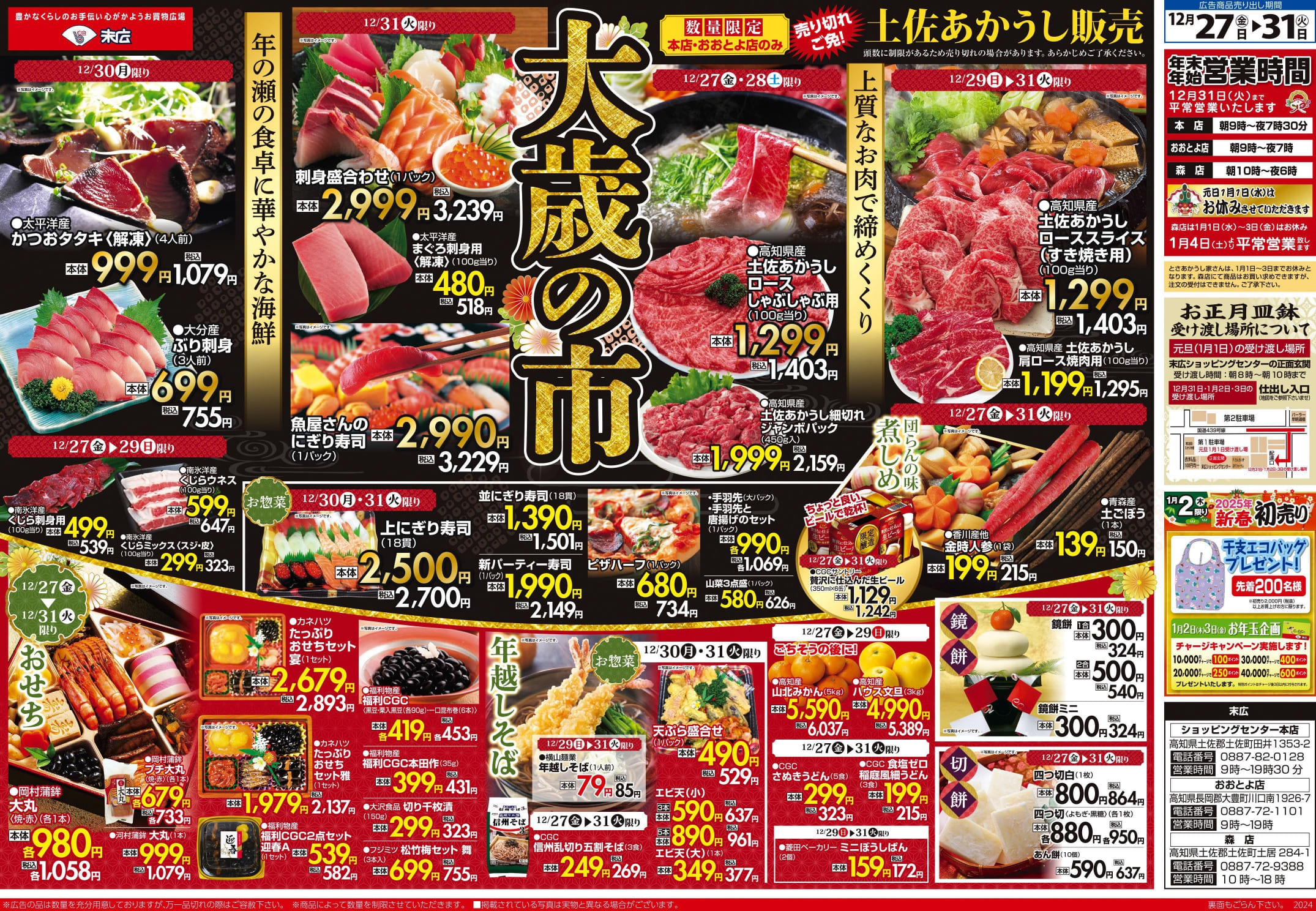 12月27日~12月31日のチラシは「大歳の市 土佐あかうしロース しゃぶしゃぶ用 1403円」