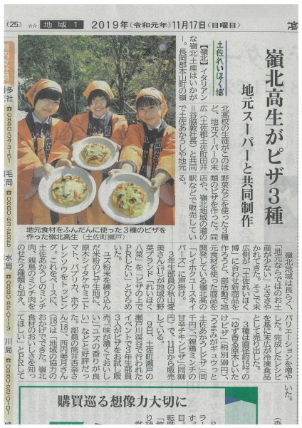 2019年11月17日高知新聞に、当社が作った「れいほくピザ」が紹介されました。