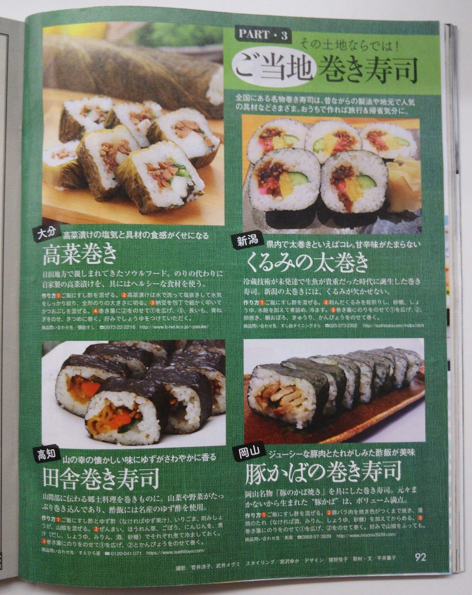 92ページ「ご当地巻き寿司」の欄で、紹介されています。