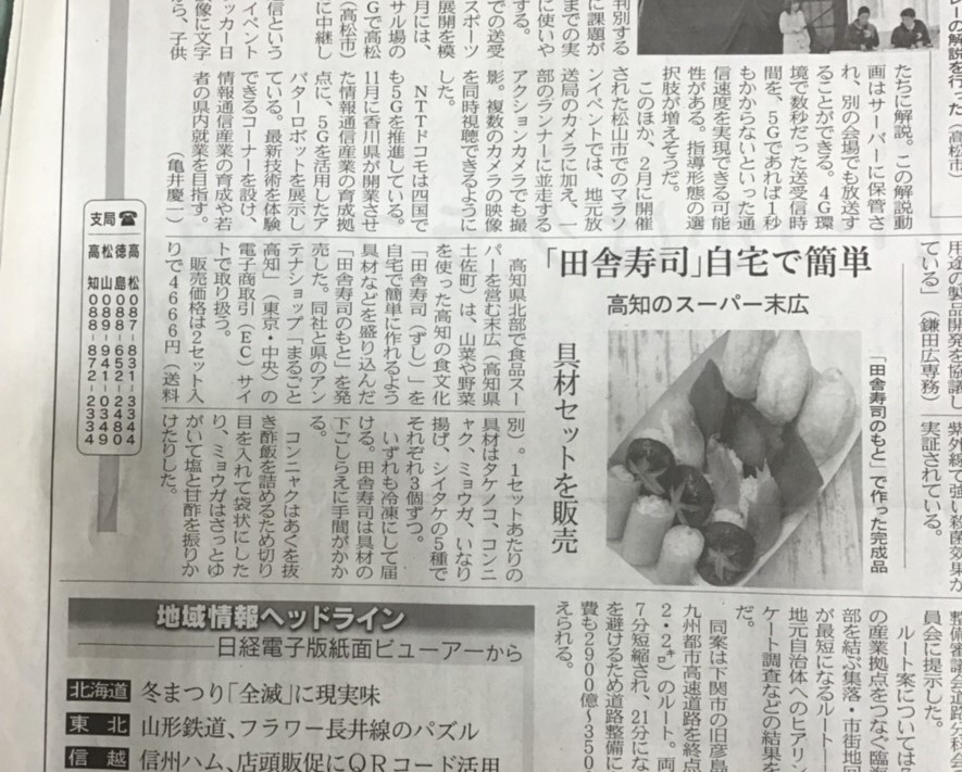 2020年12月18日、日本経済新聞39面に当社「田舎寿司のもと」が詳細されました!
