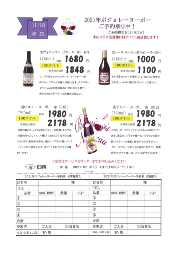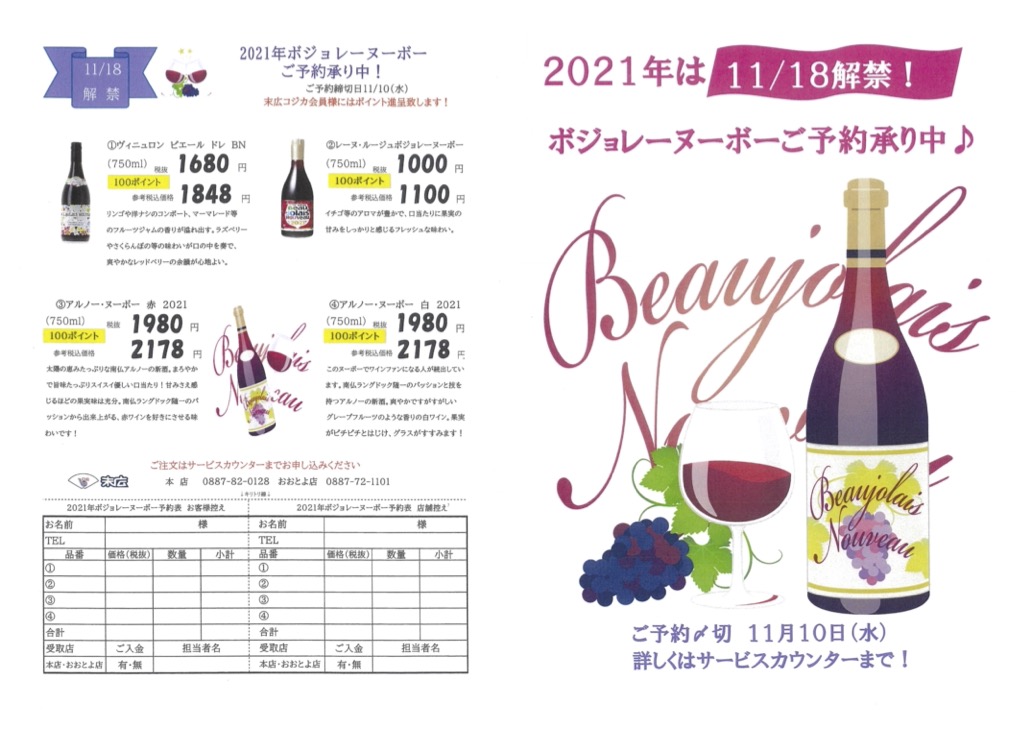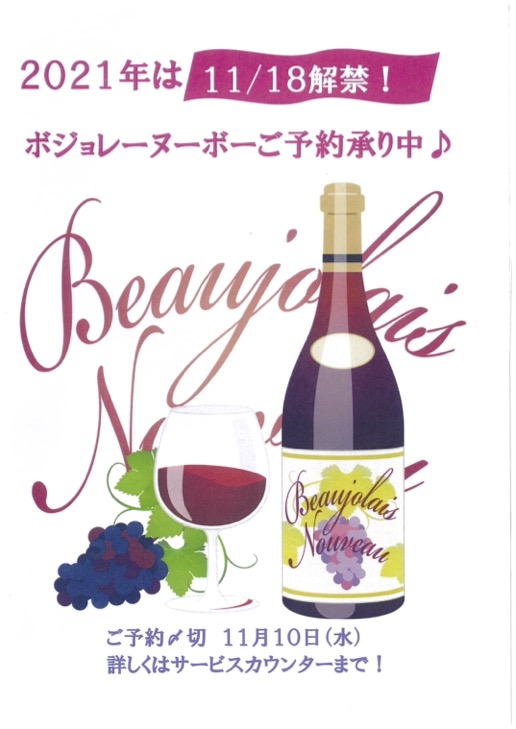 2021年ボジョレーヌーボーのご予約がネットからもできるようになりました。