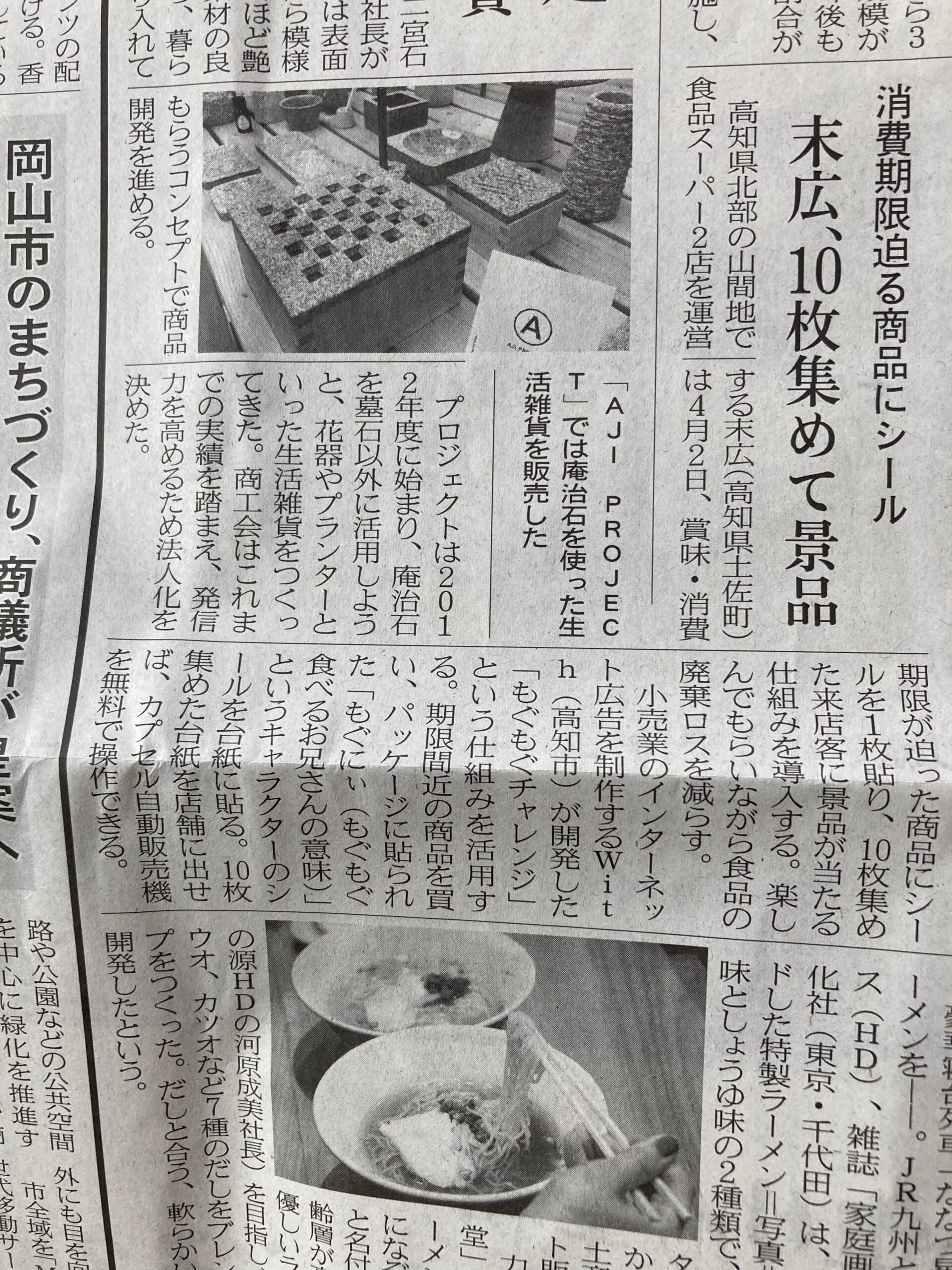 2021年3月19日(金)日経新聞四国版に、末広の新しい取組が紹介されました!