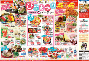 3月3日のチラシは「家族で楽しむひなまつり 手巻き寿司ネタ 863円」