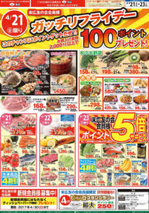 4月28日から4月30日のチラシは「GWは旬の味覚でおもてなし。カルビ焼肉用238円」