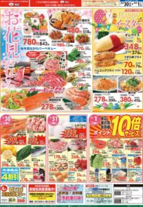 4月6日から4月8日のチラシは「春のお祝いメニュー。ジャンボエビフライ180円」