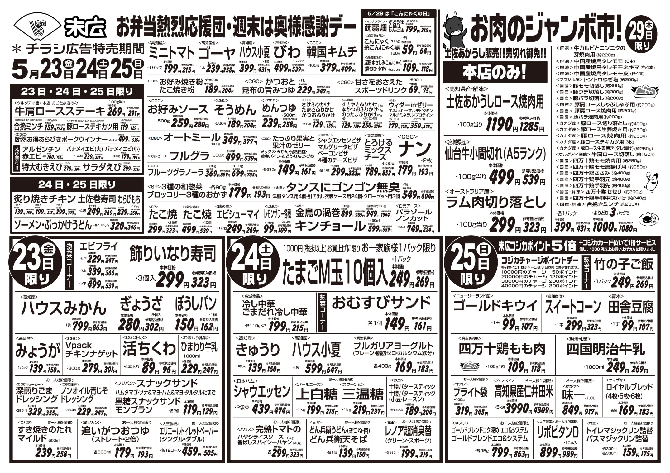 5月23日~5月29日のチラシは「お弁当熱烈応援団 牛肩ロースステーキ 291円」