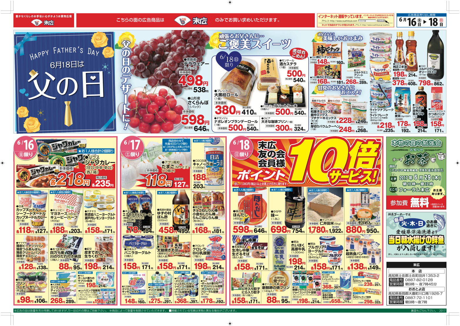 6月16日から6月18日のチラシは「6月18日は父の日。父の日のデザートに!デラウェア498円」