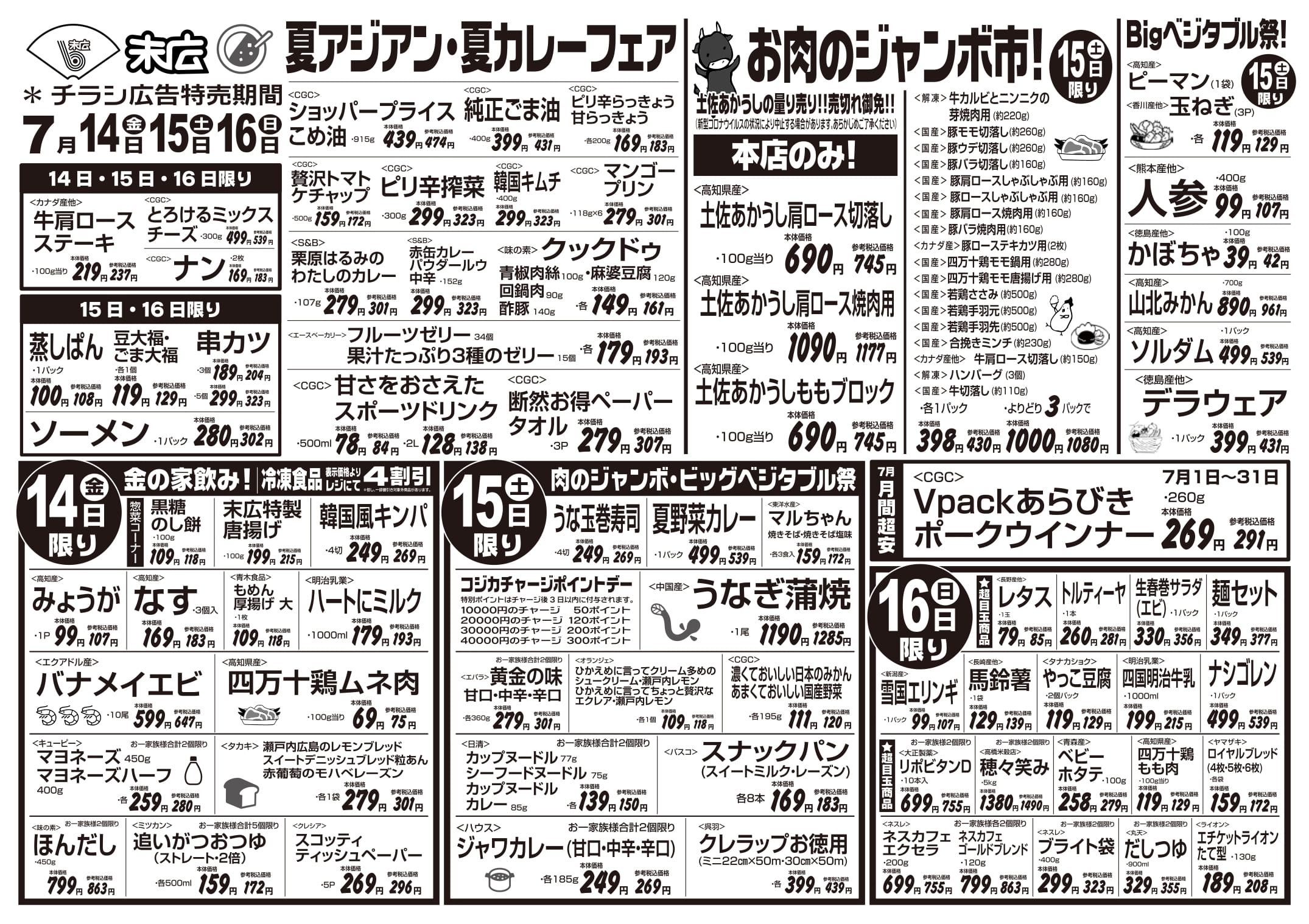 7月14日~7月20日のチラシは「夏アジアン・夏カレーフェア とろけるミックスチーズ 539円」
