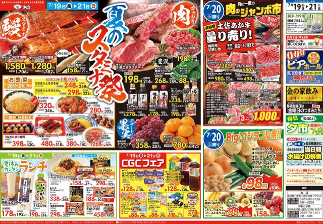 7月19日から7月21日のチラシは「夏のスタミナ祭り。うなぎ蒲焼き1,580円」