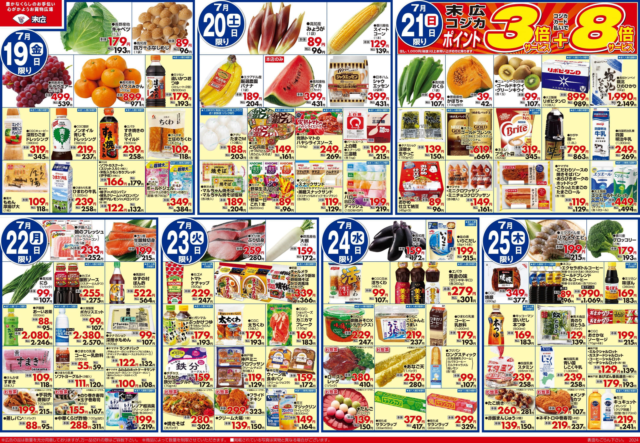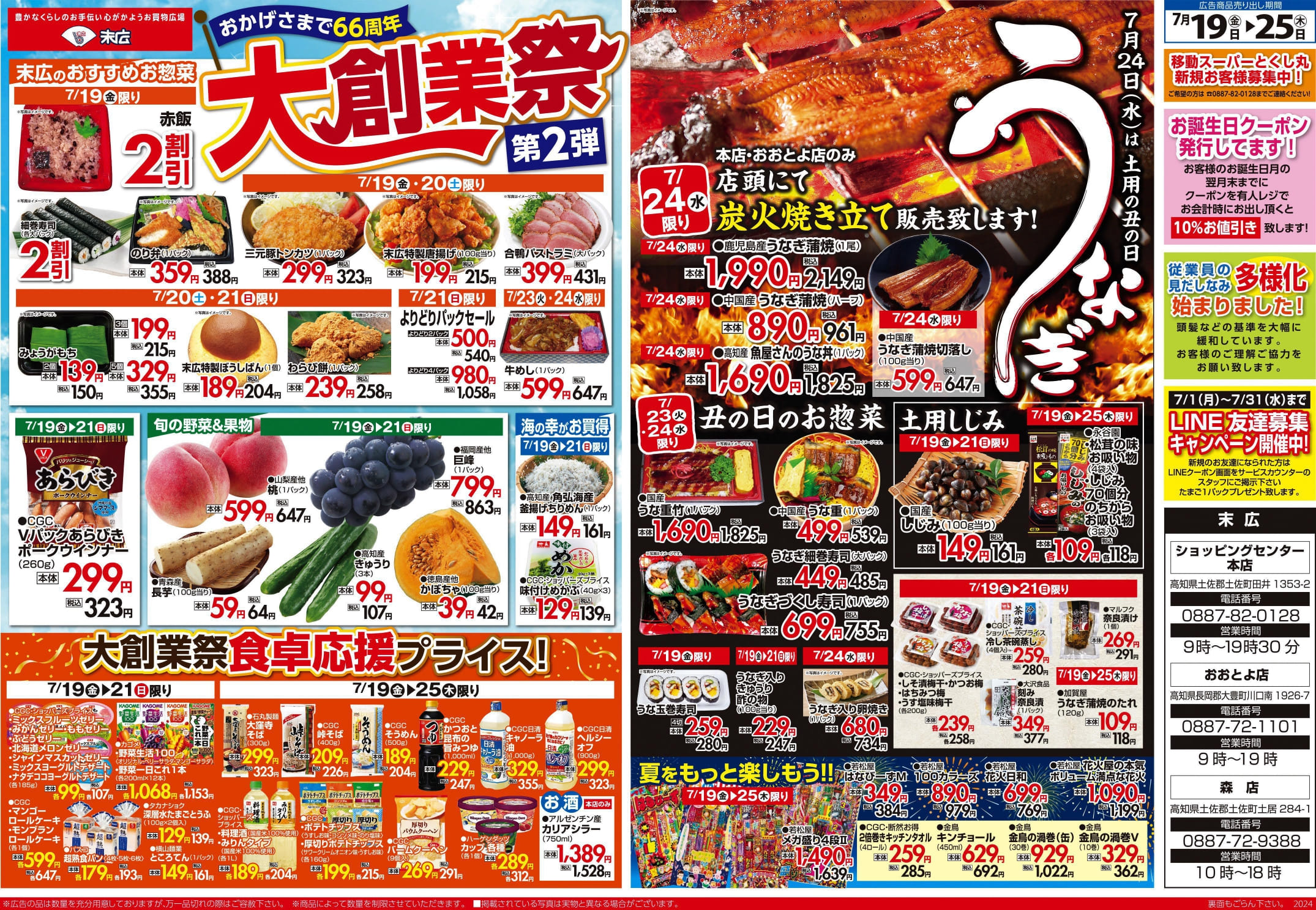【末広チラシ情報】ネットでチラシを確認できます。 7月19日~7月25日のチラシは「大創業祭第2弾 うなぎ蒲焼 2149円」 詳細版PDFはこちら(1.5MB) チラシ情報 この記事が気に入ったら いいね または フォローしてね! Follow @suehiloya Follow Me よかったらシェアしてね! URLをコピーしました! URLをコピーしました! 7月12日~7月18日のチラシは「夏のカレーvsアジアン 夏野菜カレー 485円」 はいからケーキ各種 商品回収のお知らせ 関連記事 10月17日~10月23日のチラシは「秋の土用スタミナメニュー 生さんま 626円」 2025年10月16日 高知新聞で「田舎寿司せっと」が紹介されました! 2025年10月16日 9月5日~9月11日のチラシは「秋のうまかもん祭り 本マグロ刺身用 755円」 2025年9月4日 8月29日~9月4日のチラシは「家計応援! 総力祭 トラウトサーモン 215円」 2025年8月28日 8月22日~8月28日のチラシは「初秋の味わい・秋の新商品 生さんま1尾 215円」 2025年8月21日 8月15日~8月21日のチラシは「夏のスタミナ飯特集 北海道産 無添加ほっけ開き 410円」 2025年8月14日 仕出しのメニューを更新しました。(2025年8月) 2025年8月8日 8月8日~8月14日のチラシは「お盆のごちそう 海鮮BBQセット 863円」 2025年8月7日