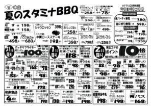 7月24日から7月26日のチラシは「夏のBBQ特集!新パーティー寿司780円」