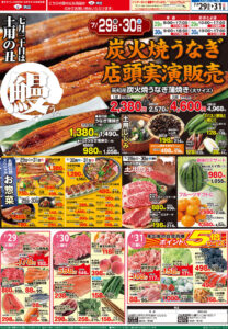 7月22日から7月24日のチラシは「熱中症に気をつけて。塩分補給に。紀州南高梅368円」