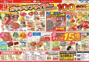 7月27日から7月29日のチラシは「夏のスタミナ。牛肩ロースステーキ198円」