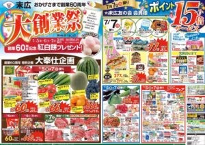 7月5日から7月7日のチラシは「おかげさまで創業60周年。大創業祭。田舎豆腐60円」