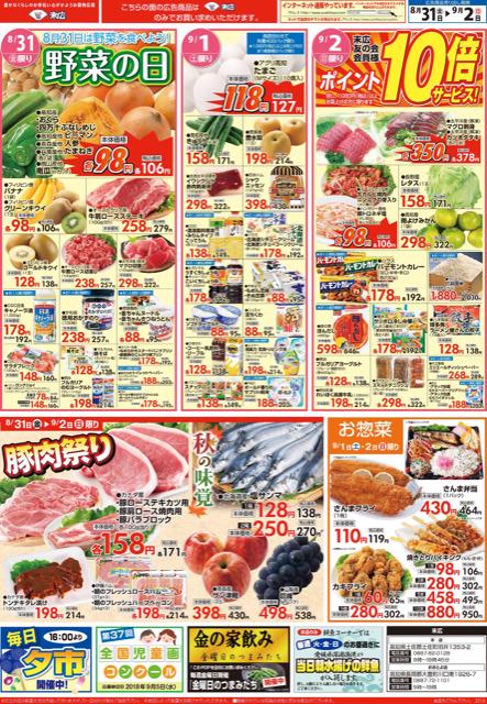 8月31日から9月2日のチラシは「8月31日は野菜を食べよう!野菜の日。おくら98円」